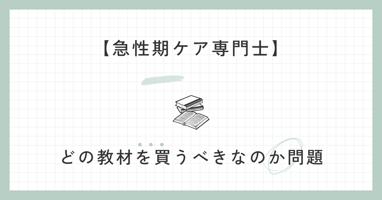 急性期ケア専門士を受けようと思って調べていくうちに、教材の種類が多すぎて、どれを購入すべきなのか困ってる人って多いんじゃないでしょうか
