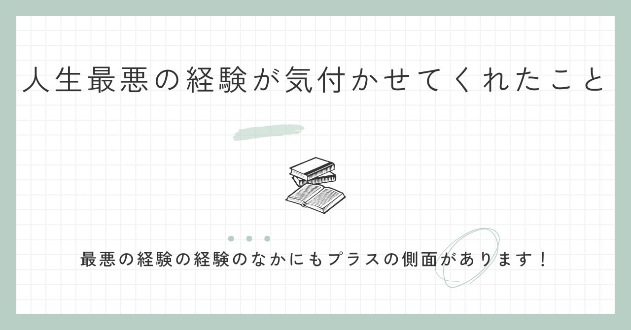 すな最悪の経験の中にも必ずプラスの側面はあります!物事は捉えよう!